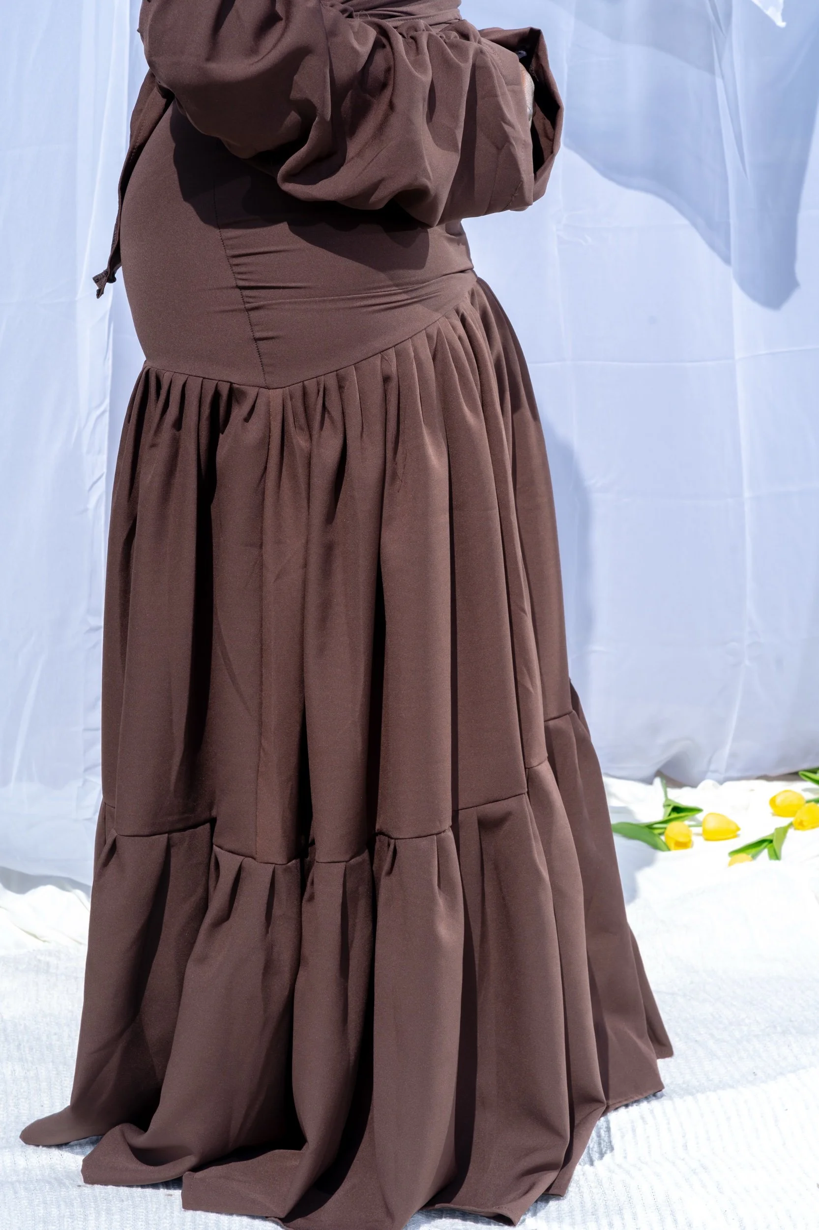 The Ife Lace Cape Dress embodies timeless modesty with a modern touch. Crafted from luxurious scuba crepe with a light stretch, it offers a smooth, sculpting fit that enhances the silhouette while remaining comfortable.